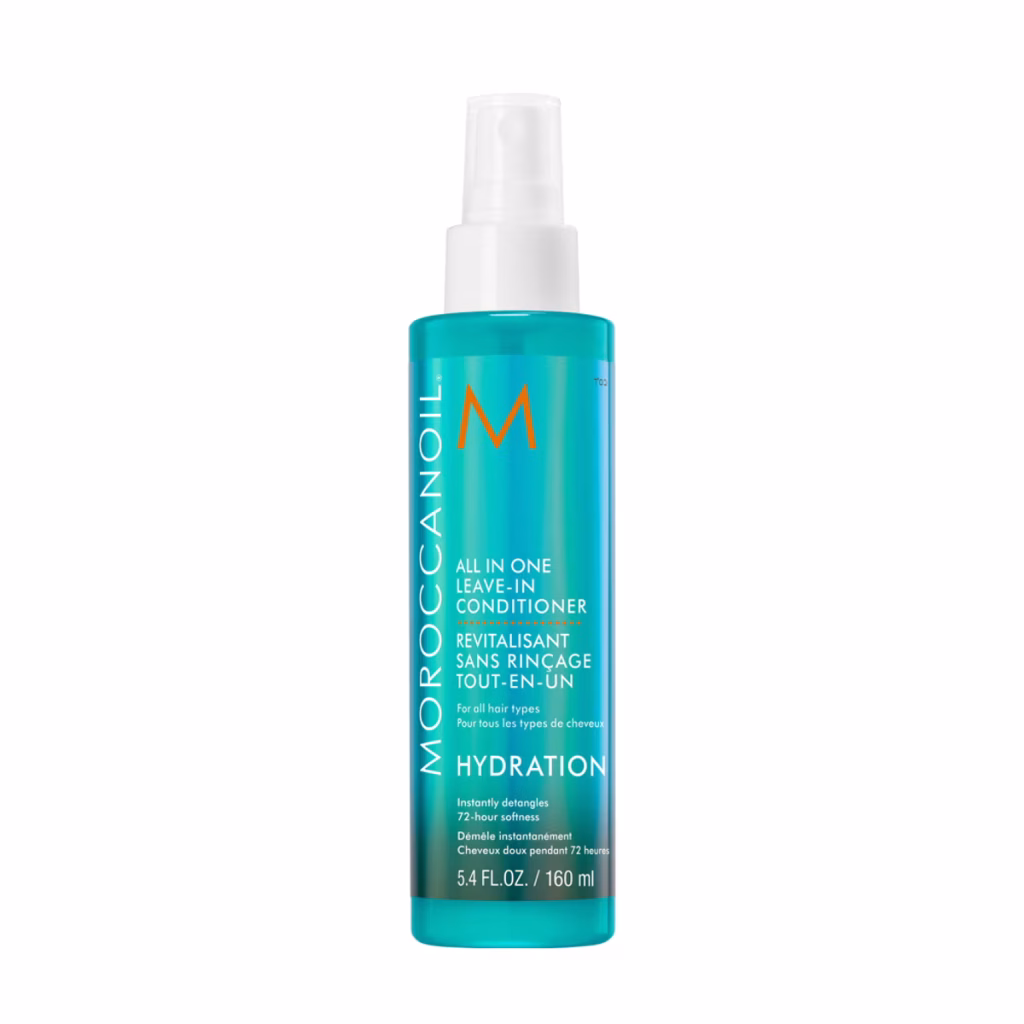 El All in One Leave-In Conditioner mantiene la hidratación por hasta 72 horas, protege del calor y reduce el quiebre. Finaliza con el icónico Moroccanoil Treatment, que sella la hidratación, acelera el secado y deja un acabado luminoso con movimiento natural.